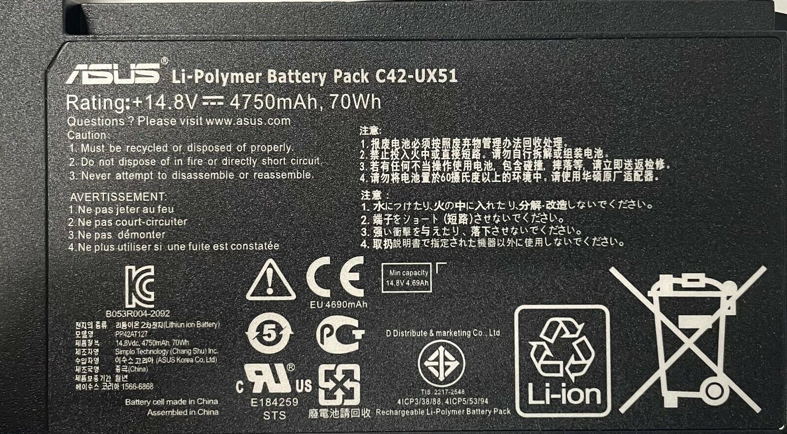 ASUS Battery - ZenBook UX51V UX51VZ U500 U500V U500VZ U500VZA C42-UX51